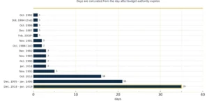 Past shutdowns were usually brief, but more recently scope and duration have widened, threatening key data releases and policy visibility. Source: US House of Representatives