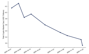 October 2025 marked the steepest single-week decline in total crypto market cap as panic selling swept across the sector. Source: Coin Gekko